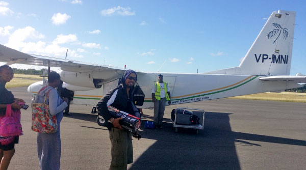 The first passengers to leave Codrington Airport, Barbuda on the 21st December 2014